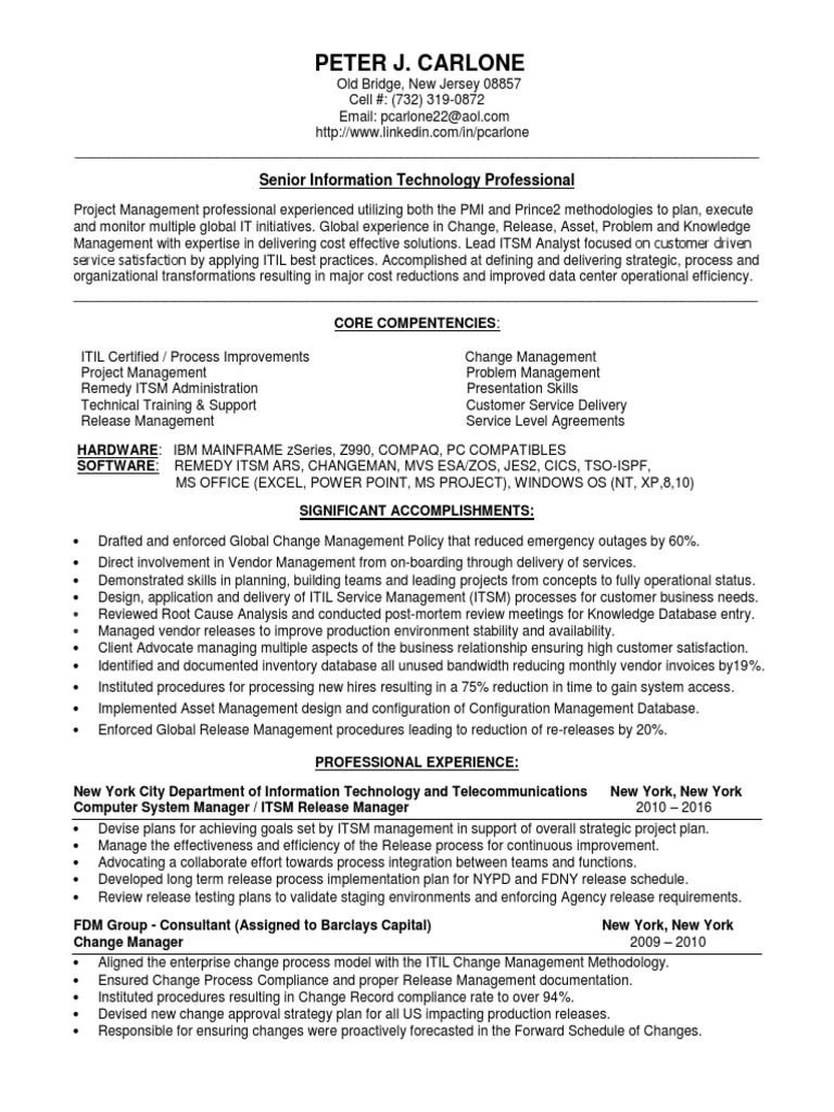 Organizational change management senior manager resume examples & samples. There are certain skills that many change management consultants have in order to accomplish their responsibilities. The resume uses headline to focus the reader on the management profile. Change management role is responsible for business, interpersonal, organization, leadership, organizational, presentation to write great resume for change management job, your resume must include: The resume also uses an executive summary that is ideal for a management position. Job objective would like to be considered for change manager at your company where i can be of service to those employees who would be on my team. Check out our change management consultant resume example for an outstanding example. Change management consultants play a vital role in companies undergoing organizational change. Here we offer you change management resume articl. .managers, program management leads, hr, hiring managers, change management project leads, recruiters, and other project management what are the best project management keywords for resumes? We discovered that a lot of resumes listed analytical skills. Resume » resume examples » specialist resume » change management specialist. A change management specialist provides support to organization towards achieving successful and efficient process changes. How do you make your change management resume stand out from the crowd? Change management is the process of helping individuals and your organization transition from the current state to the desired state. Crafting a change management specialist resume that catches the attention of hiring managers is paramount to getting the job, and livecareer is here to help you stand out from the competition. He has to ensure that changes in the management process is well received and. Organizational change management (ocm) is a specific area of change management. A career change resume sample that gets jobs. All of them require that you know how to manage change effectively even if you don't immediately regard changes as something you must manage. What to know about your change management resume are you applying for change management position? A resume of some articles that i wrote about change management. Project managers view change management as the process used to obtain approval for changes to the scope, timeline, or budget of a project. A workshop designed to integrate change management and project management, to improve results and consistently reach your project objectives faster. Successful resume samples for this role highlight duties like implementing change projects and initiatives, upgrading business processes, minimizing employee resistance, and encouraging faster. Sample resumes & cover letters. Infrastructure professionals consider change management to be the process for approving, testing, and installing a new piece of equipment, a cloud instance, or. Supporting tools and components for implementing change management processes. Read our complete guide to writing a professional resume for career changers: Understanding how the discipline evolved and where it's headed. How to write change management resume.