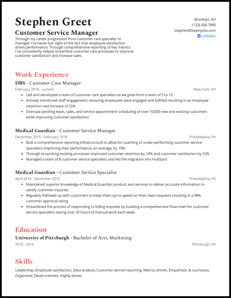 Airline Manager Resume Example. Customized samples based on the most contacted customer service resumes from over 100 million resumes on file. It includes a list of qualifications, work experience, and. Sample customer service and customer service manager resumes and templates, highlighting education, experience, and skills, with writing tips and the following is an example of a resume for a customer service management position. 1 year of contact center system experience. Responsible for suggesting methods to improve area operations, efficiency and service to both internal and external customers. Customer service lead resume examples & samples. Basic internet knowledge required (web browser, email). Supervised info exchange staff of 60+ analysts providing customer service for internal and external. Leveraged customer service abilities for proper resolution of calls, collaborated with customer service manager to boost morale, improved productivity and customer satisfaction, and curbed absenteeism. Write a customer service resume that gets jobs. Write an engaging customer service resume using indeed's library of free resume examples and templates. Find the best customer service team lead resume examples to help you improve your own resume. Provides continual evaluation of processes and procedures. Customer service lead resume examples & samples. Customer service/team lead with 4 years of experience dedicated to effective team management and customer satisfaction.