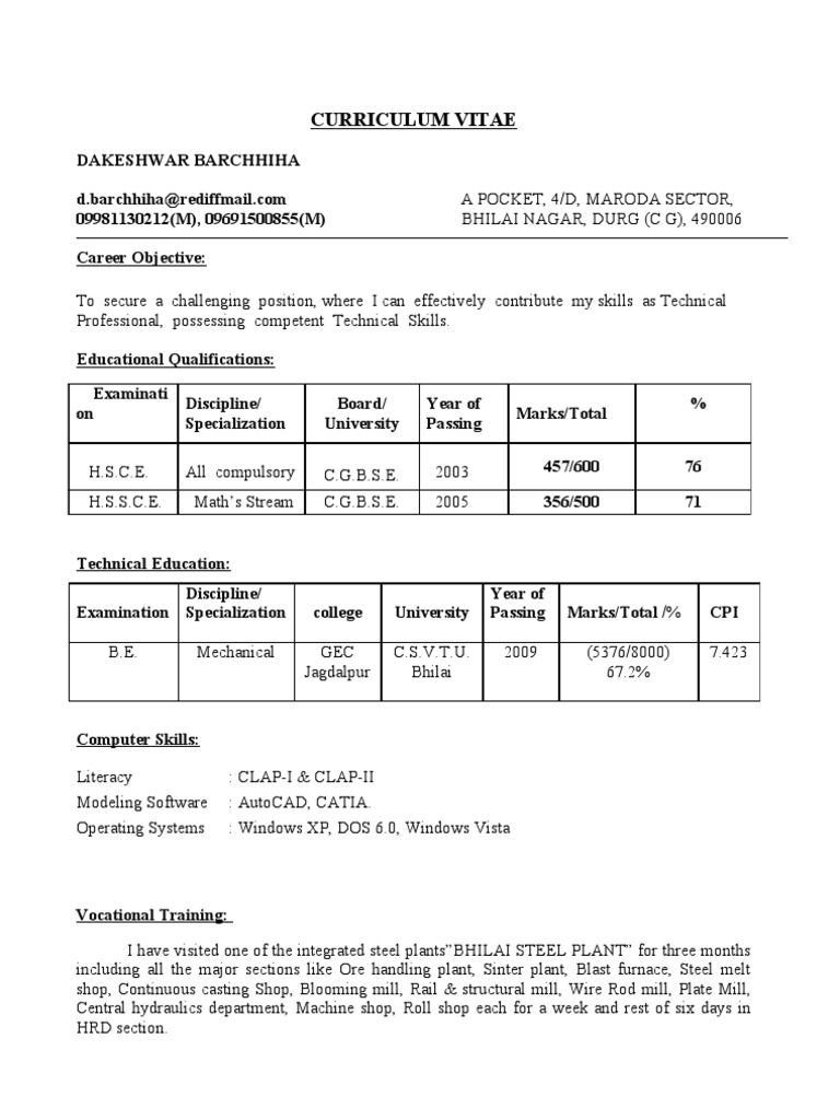Mechanical Engineering Student Skills Resume In Word Format Curriculumvitaes Kyumesa , An Effective Cv Of A Mechanical Engineer Should Highlight Following Qualities: