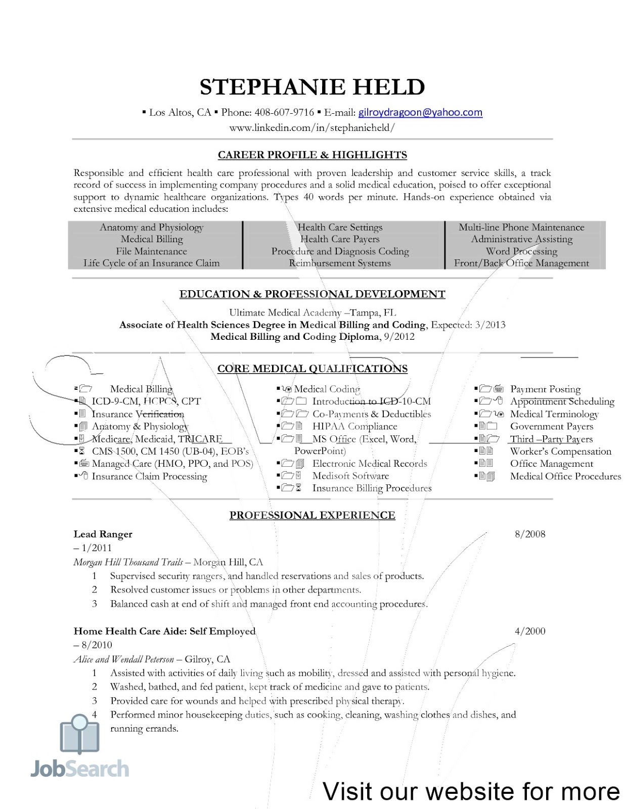 Jennifer Lowe Resume Medical Billing Resume Career Medical Resume Medical Coder Resume Medical Assistant Resume. 15+ years of experience as a medical biller. Seeking to obtain a position where my skills can be utilized and. A medical biller resume should show your ability to use medical codes to document patient diagnoses and treatments—but to put yours over the top, you this is what's missing from many medical billing resume samples you've scoured through. 1+ year of office experience. Medical billers are primarily responsible for handling all aspects related to medical billing and payments. Write an engaging medical billing specialist resume using indeed's library of free resume examples and templates. Medical biller resume samples with headline, objective statement, description and skills examples. Associate's degree in related field. Strong background in administrative support. Download sample resume templates in pdf, word medical billler resume. Edge out the competition by writing your medical billing. Experience in a small office setting. Customized samples based on the most contacted medical billing specialist resumes from over 100 million resumes on file. Carlson 3755 rogers street cincinnati, oh 45249 phone: Medical biller / administrative assistant resume examples & samples.