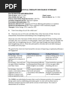 Svpod 015 Outpatient Occupational Therapy Discharge Summary . Discharge Report Summary Of Occupational Therapy Services And Outcomes 1.