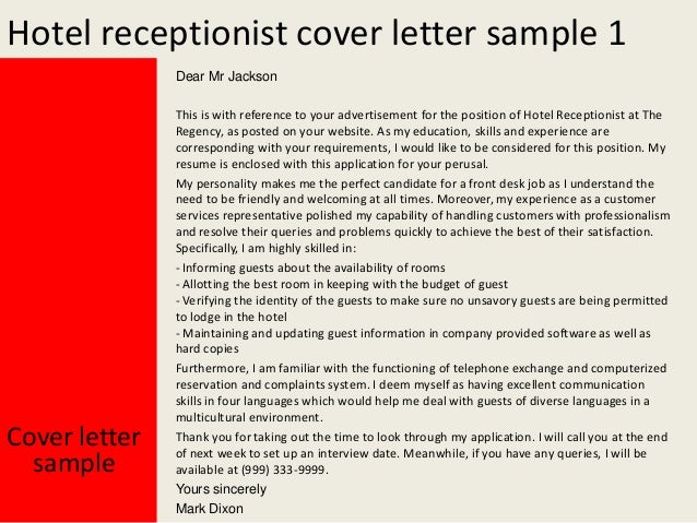 Cover Letter Receptionist Hotel Hotel Receptionist Cover Letter. Sample cover letters for a receptionist position, what to include in your letter, how to format it, and more cover letter examples and writing tips. Good cover letters are the key to job search success. You'll need a great phone manner and a good cover letter, and our receptionist cover letter examples are a great place to start. You can easily adapt this receptionist cover letter for your own use. Jason is applying for a medical receptionist job requiring experience in managing phone lines and responding to email or fax inquiries. Receptionist cover letter is written specifically for applying as a receptionist for any company or institute. So here's what to include in your cover letter Send a stand out cover letter, get the employer's attention and increase your chances of getting the receptionist job. Choose the best receptionist cover letter template. Same works with a cover letter for receptionists—. Meet jason, the seasoned receptionist with some years of relevant professional experience. An orderly format is what hiring managers love. Plus, take a look at two sample cover letters for receptionist positions that you can use as a template while writing your own. Listed below are some sample cover letters that will guide you through the format and content of these letters. Interested in a receptionist position?