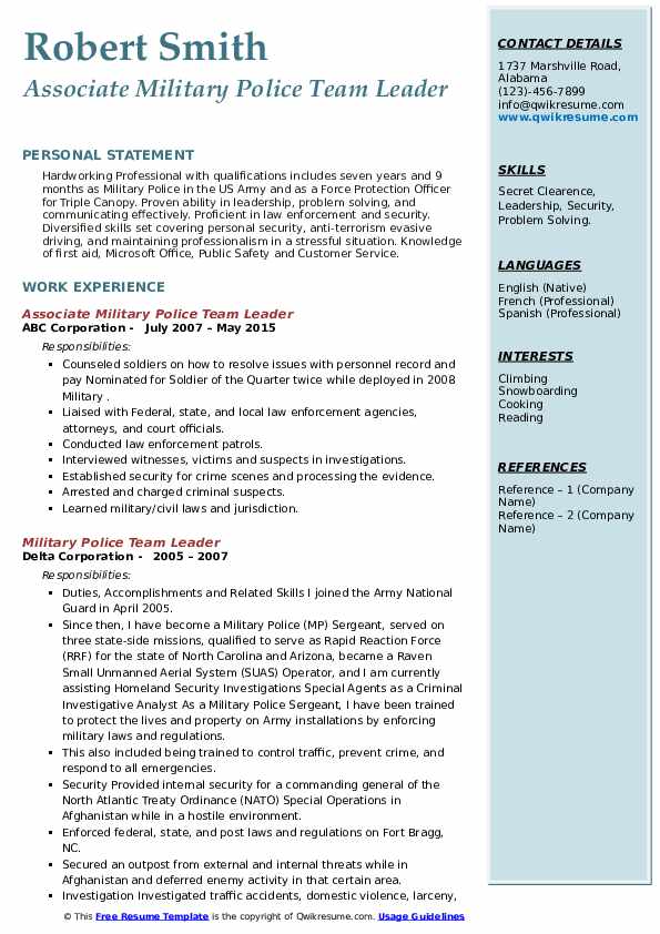 Military Police Team Leader Resume Samples Qwikresume : On This Page You Will Find A Link To A Professionally Designed Template That Can Be Used To Create An Interview Winning Cv Or Resume.