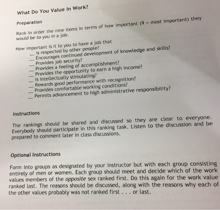 Solved What Do You Value In Work Preparation Rank In Ord Chegg Com . Maybe That's Not As Critical As We've Been Led To Believe.